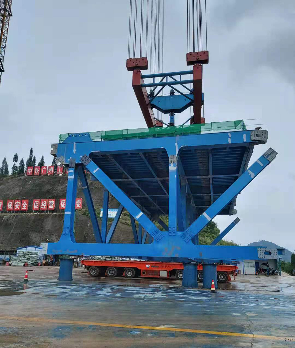 瓮开高速开州湖特大桥,为主跨1100米的双塔单跨钢桁梁悬索桥,全长1257米,主塔高139米。采用2×125吨缆索吊进行安装,于2021年8月17日合龙。
